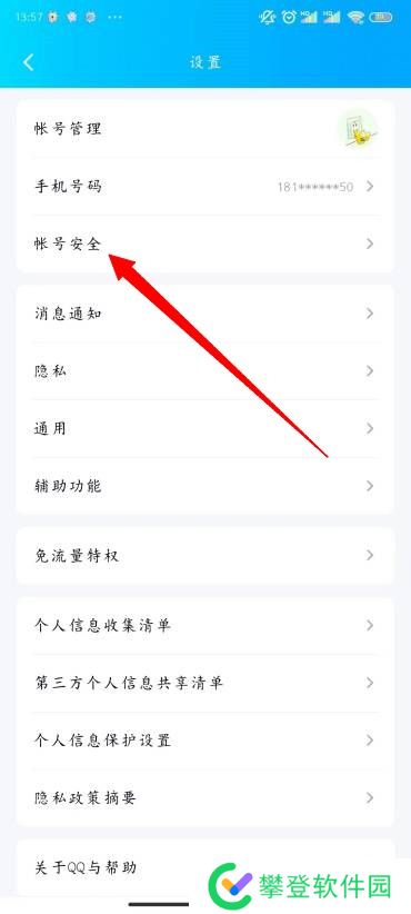 3、在设置界面中,选择并点击【账号安全】选项;