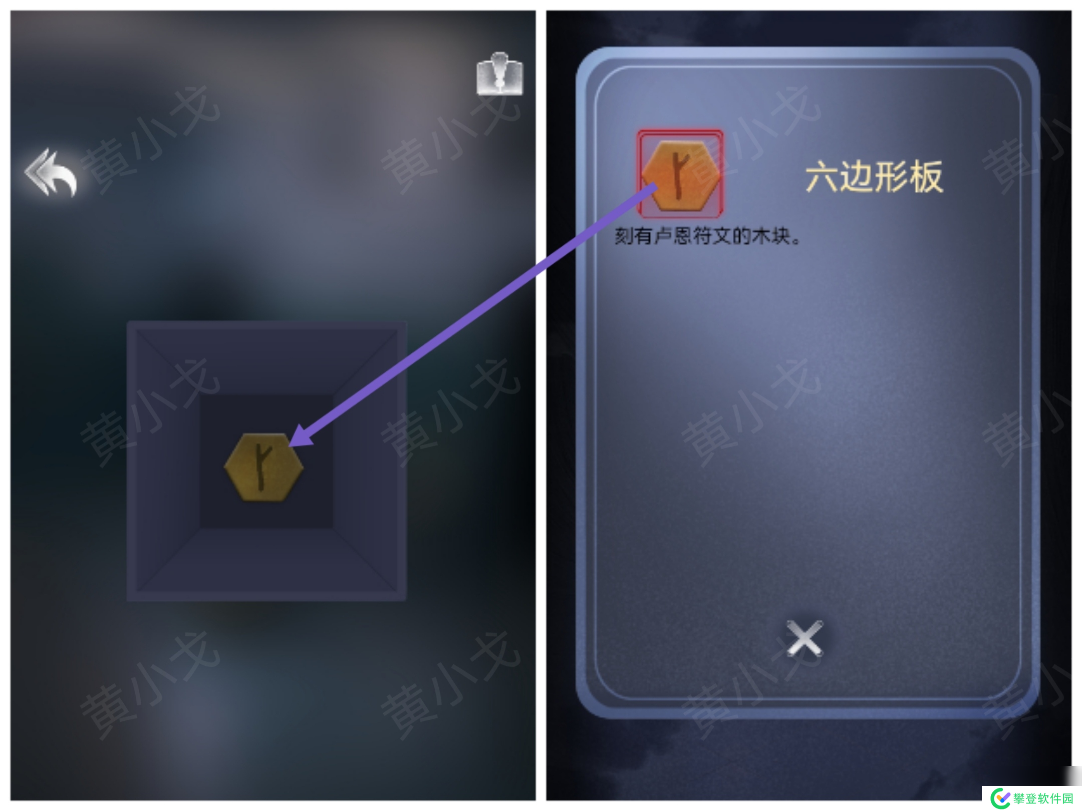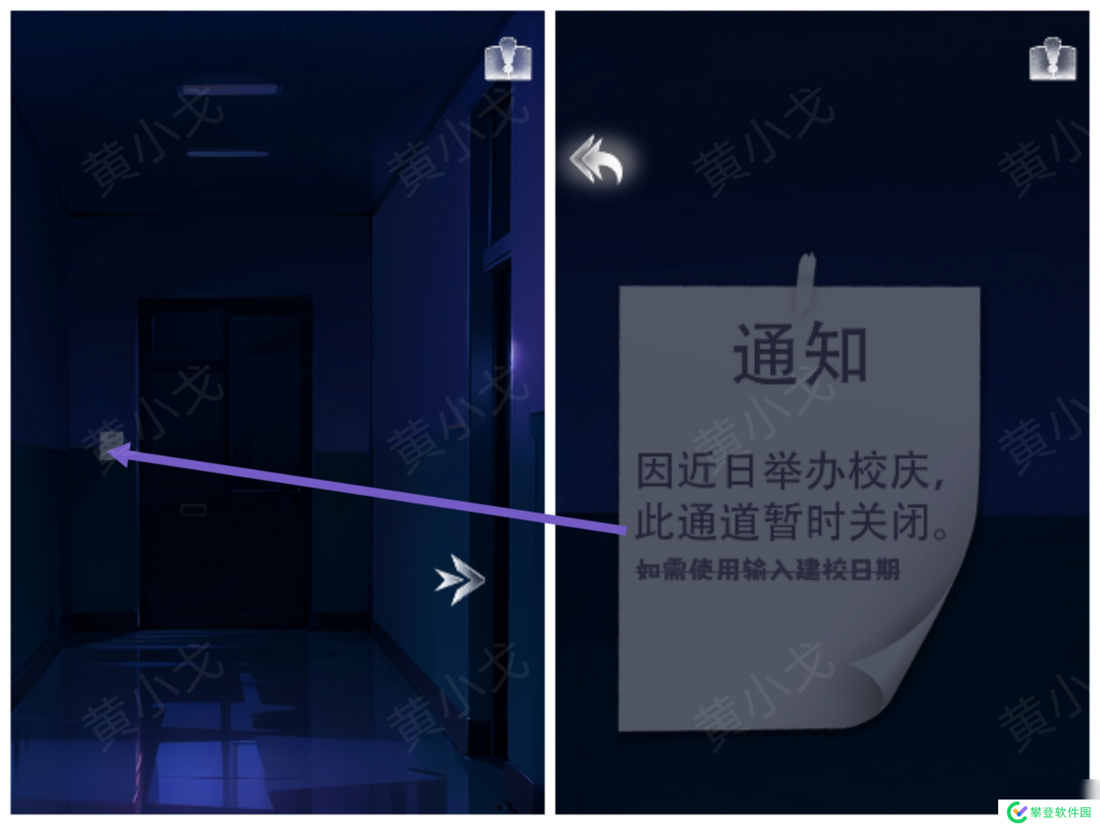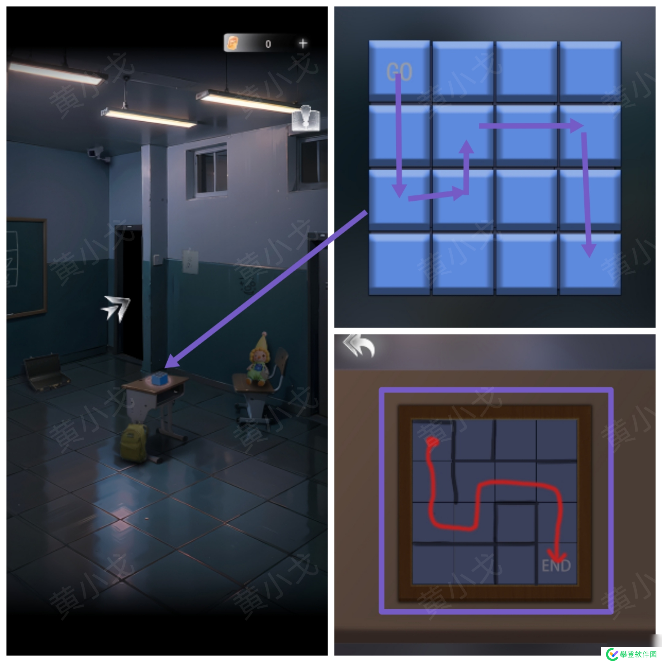 14.点击黑板,把【卡片5】和【卡片2】放入九宫格正确的位置。墙上出现图案,告诉女主
