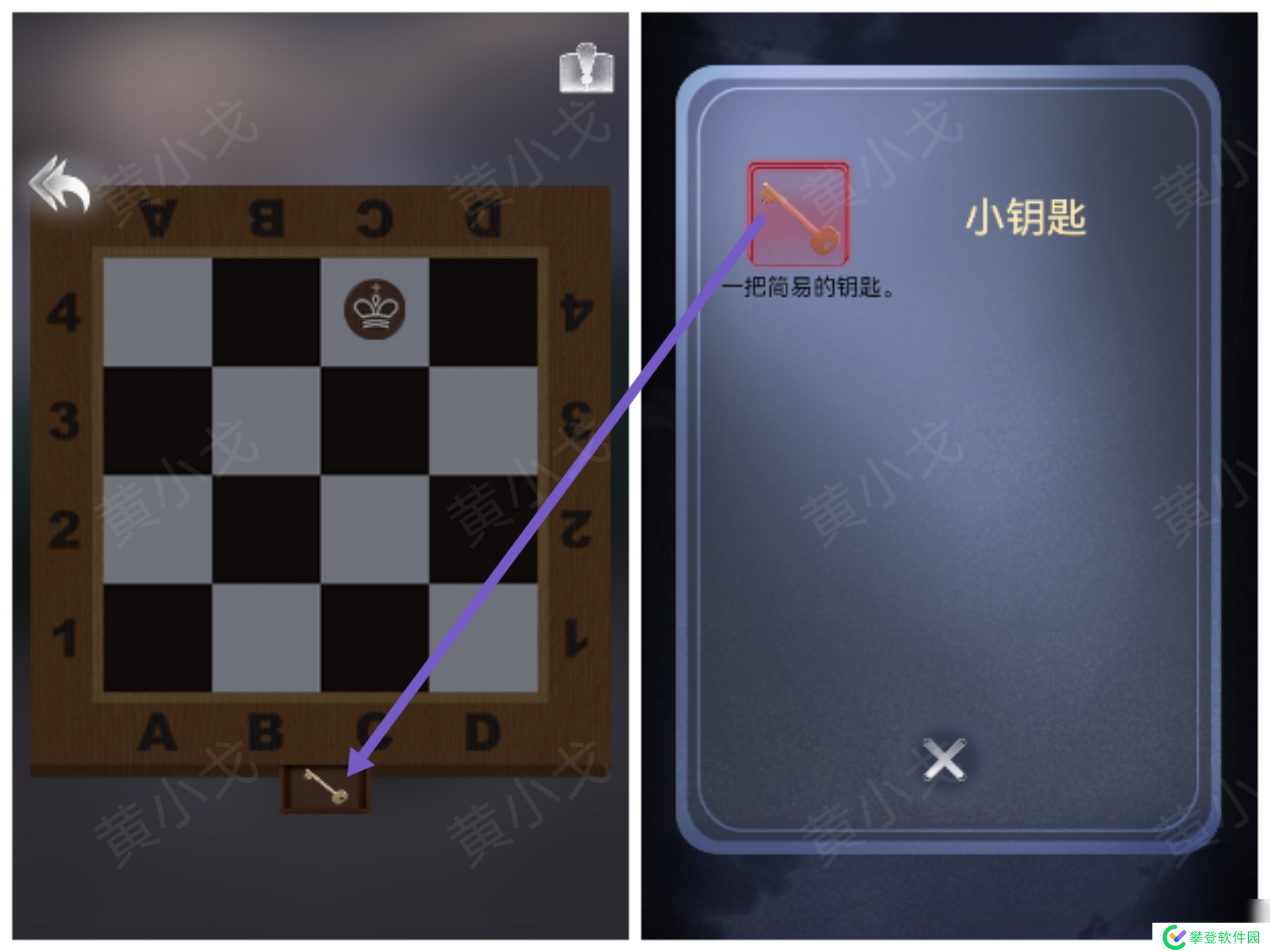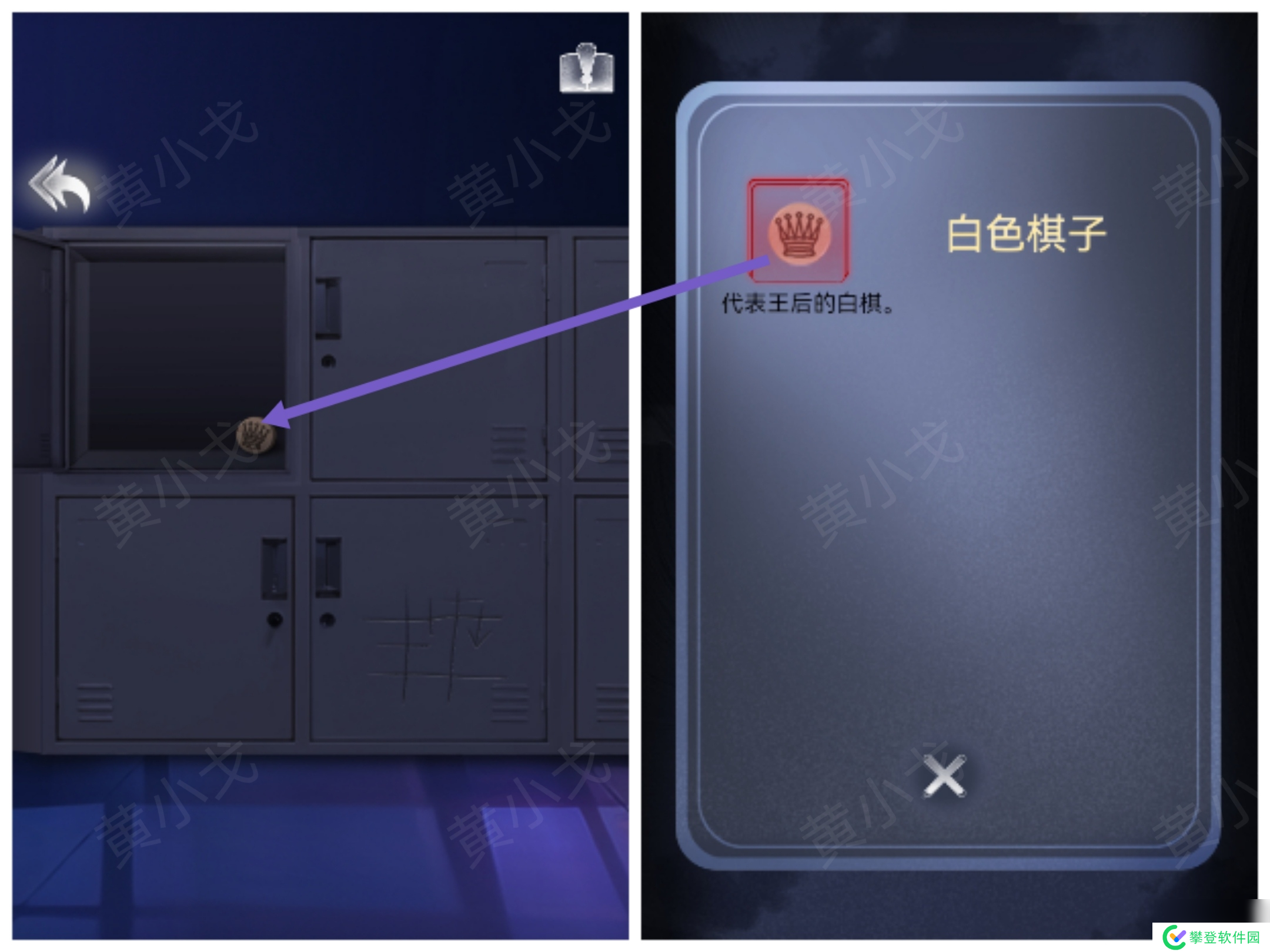 9.女主激活法阵后;点击课桌上的棋盘,女主下完棋后,得知黑棋位置线索,根据线索,把【黑色棋子】摆到C2格。获得线索,告诉女主