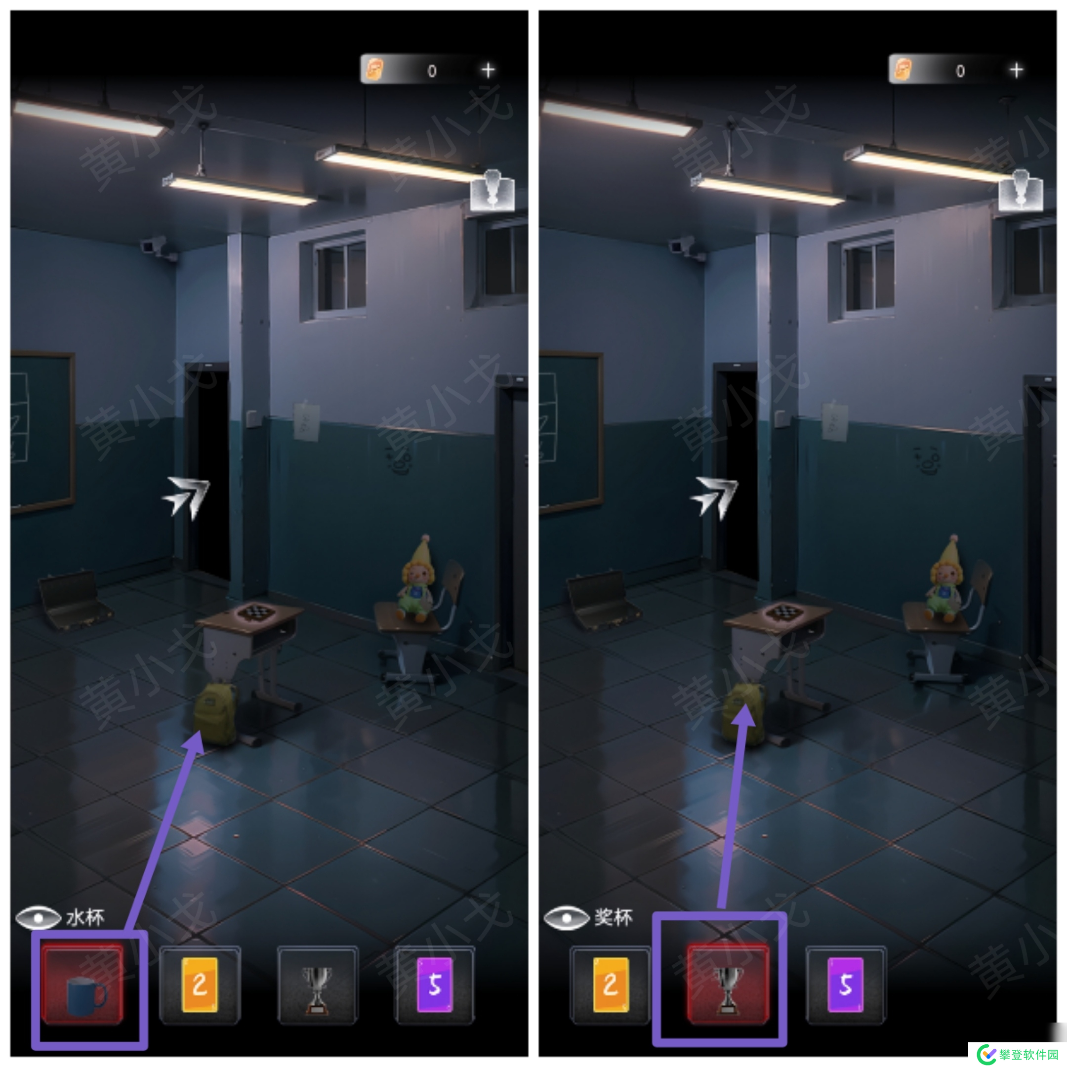 8.把【金杯】和【白色棋子】放入书包传给队友
