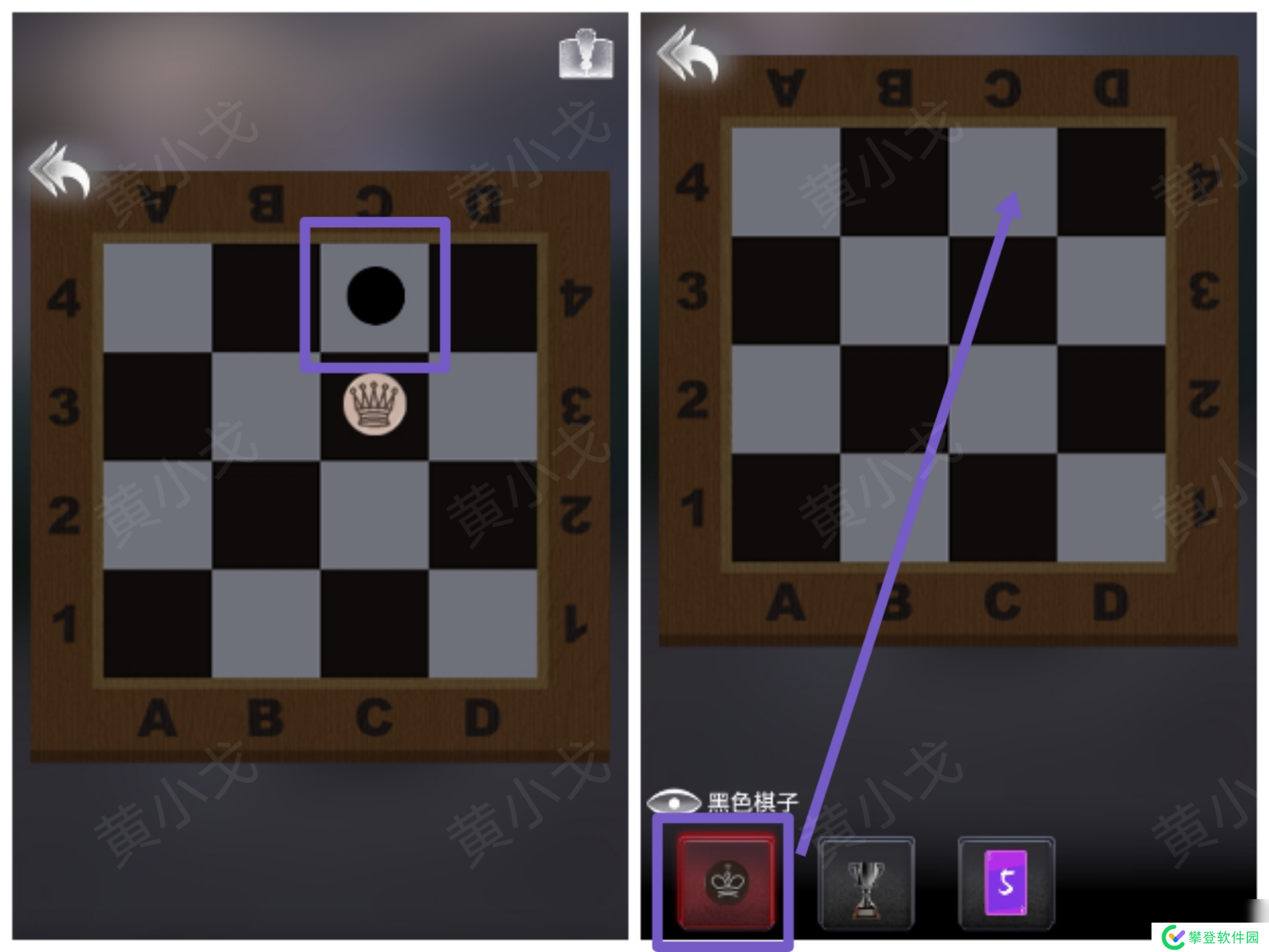 10.女主下完棋后,得知黑棋位置线索,根据线索,把【黑色棋子】摆到C4格,完成下棋