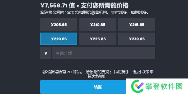 3、玩家需要支付最少¥205.65 以获取这70款游戏商品。