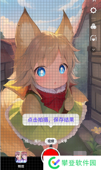 3、选择好特效以后,点击拍摄屏幕上方的【上传图片或点击屏幕开始AI绘画】。