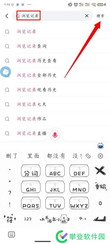 2、在输入框中输入【浏览记录】,然后点击右侧的【搜索】按钮;