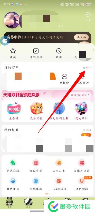 2、在个人页面中找到并点击我的订单右侧的【全部】;