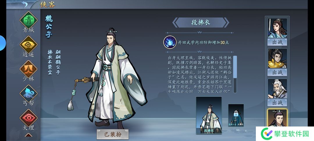 侠客:换出场角色的地方,点右边出战可以更换,每个角色不同效果