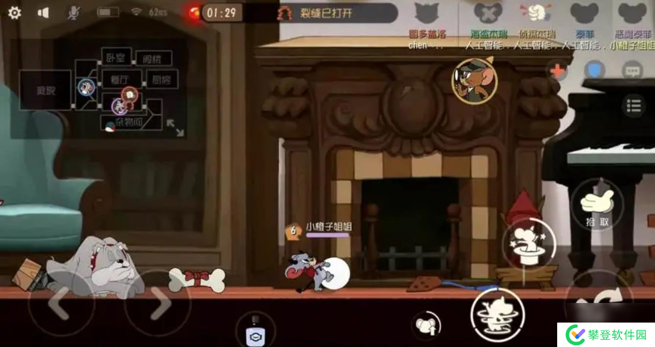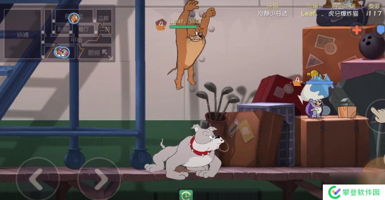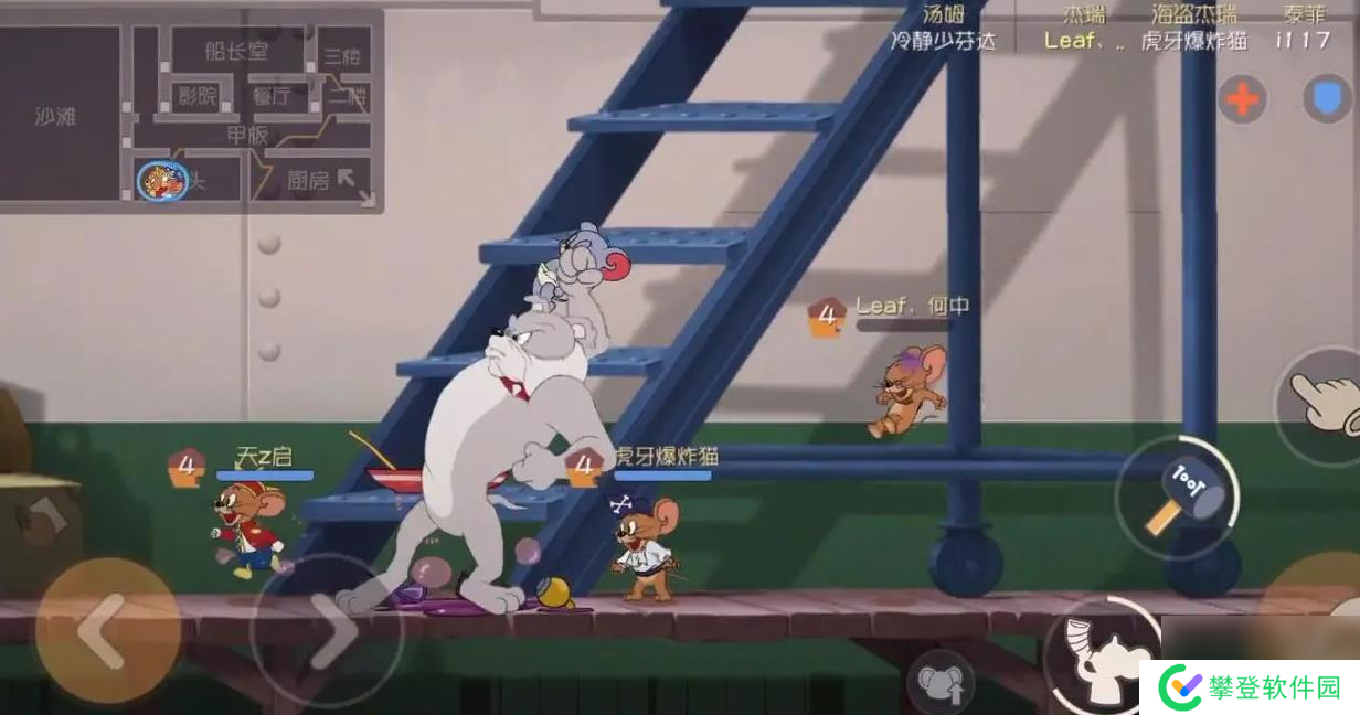 除此之外,如果老鼠在泰克附近进入了倒地状态,还会被其像猫那样抓起来,只不过不会主动的挂上火箭,在猫来临之前,老鼠可以努力挣脱。利用好地图当中的这些中立元素,将会在后续给予我们巨大的帮助。