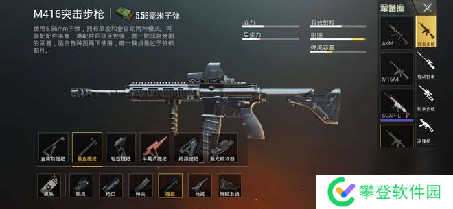 再来介绍一下托板配件。狙击枪托腮板能够减少20%的垂直方向后坐力和画面抖动以及15%的摇晃,它的目的就是维持枪支的稳定性。战术枪托可以减少20%的后坐力效果,还可以增加%15的后坐力消退,减少画面抖动和摇晃。战术枪托非常适合M416,可以有效的降低M416的摇晃。枪托能够减少20%的后坐力效果和垂直方向后坐力,还能增加15%的后坐力消退,对于喜欢玩UZI的玩家是不错的选择。直角前握把能够减少20%的后坐力效果以及平行方向后坐力,还能增加10%的快速瞄准。垂直握把就是可以减少枪支垂直方向的后坐力,握把就是发挥着减少反冲力的作用,垂直握把就是减少垂直方向的反冲力,比较适合点射类型的武器。