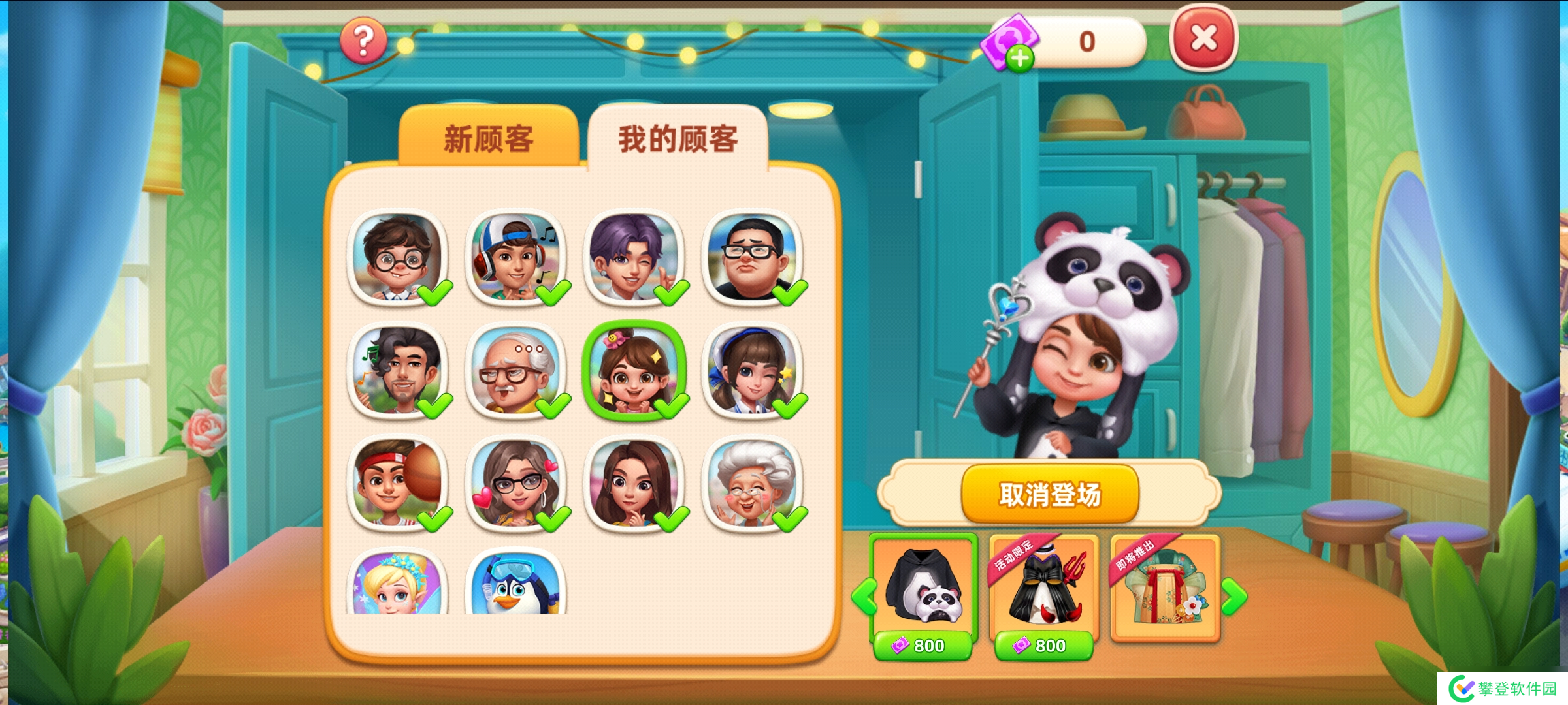 • 玩家可以在顾客系统中选择顾客“登场”或“取消登场”,“取消登场”即该顾客不会出现在关卡内;