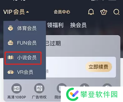 2、进入会员页面之后在左上角可以选择自己的会员,里面有很多的会员可以选择,这时玩家需要选择【小说会员】;