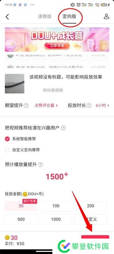 5、然后先选择定向版,根据自己的想法确定各项选项后,点击支付就可以啦。
