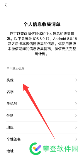 3、在个人信息手机清单中,找到头像选项点击查看。