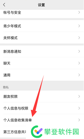 2、在设置页面找到【个人信息收集清单】,然后点击进入。