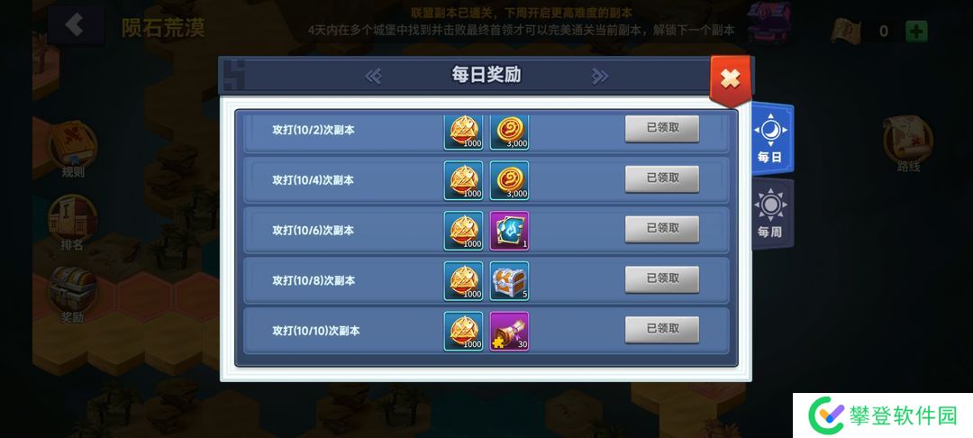 联盟副本必打满十次,图片上是10获得的奖励