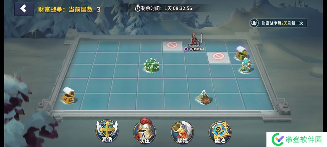 9、财富战争3天一次,不要第一天打完,第一天打到第三层,把第三层boos打了,留一个怪第二天过每日任务,多十个宝箱。竞技场不要去挣排名没啥意义,竞技卷留着,也有竞技活动,每天可以买一个必买,竞技场每天随便打一次过任务就够了。