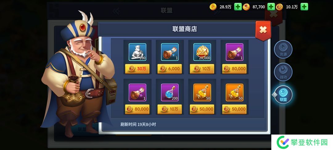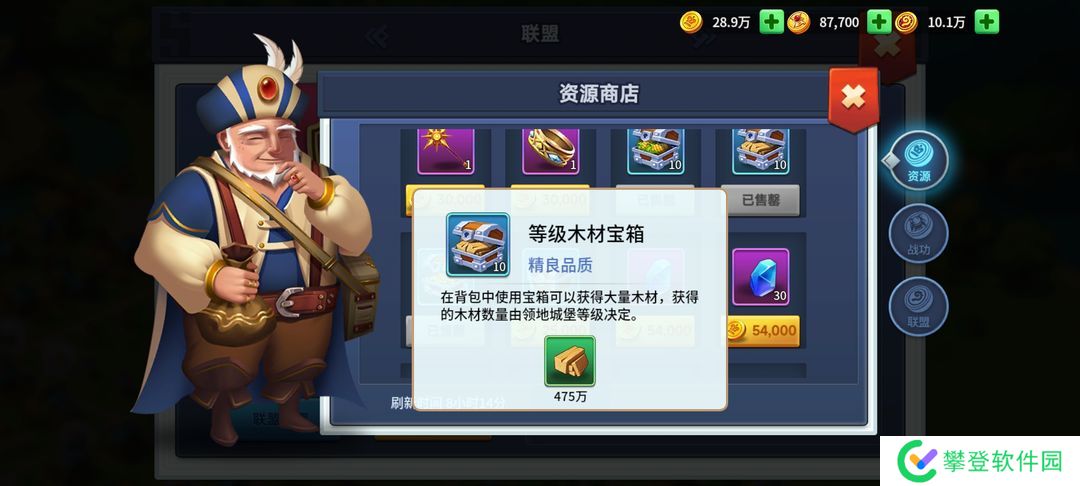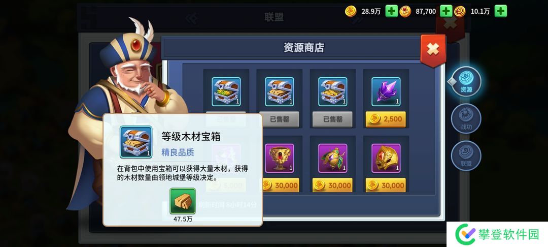 联盟战争获得的收益在联盟资源商店购买木头