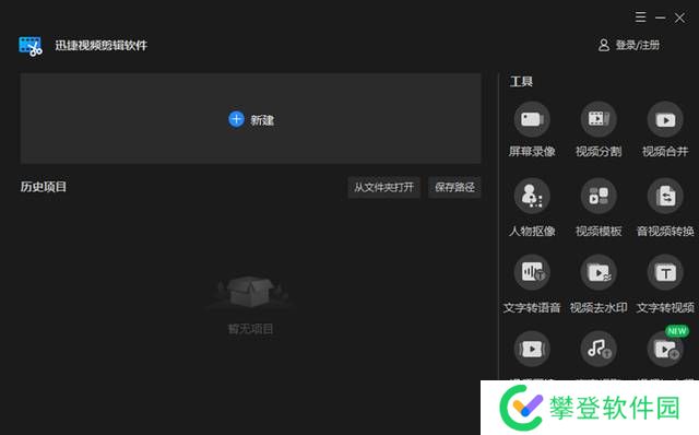 这是一款电脑端的剪辑软件,打开软件,进入首页,我们可以看到右侧的工具栏具有十分丰富的功能选项。比如视频合并、视频去水印、视频模版等等,可以满足你的一些视频编辑需要。剪辑视频的话,我们直接点击新建。即可进入到视频剪辑的页面。导入几段视频,拖动到时间轴上。借助左侧的工具栏进行编辑操作即可。