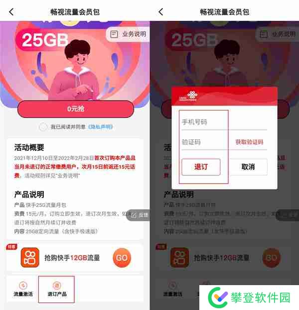 选择您要退订的流量包,系统会提示您输入手机号和验证码进行验证,完成验证后即可成功取消免流量服务。