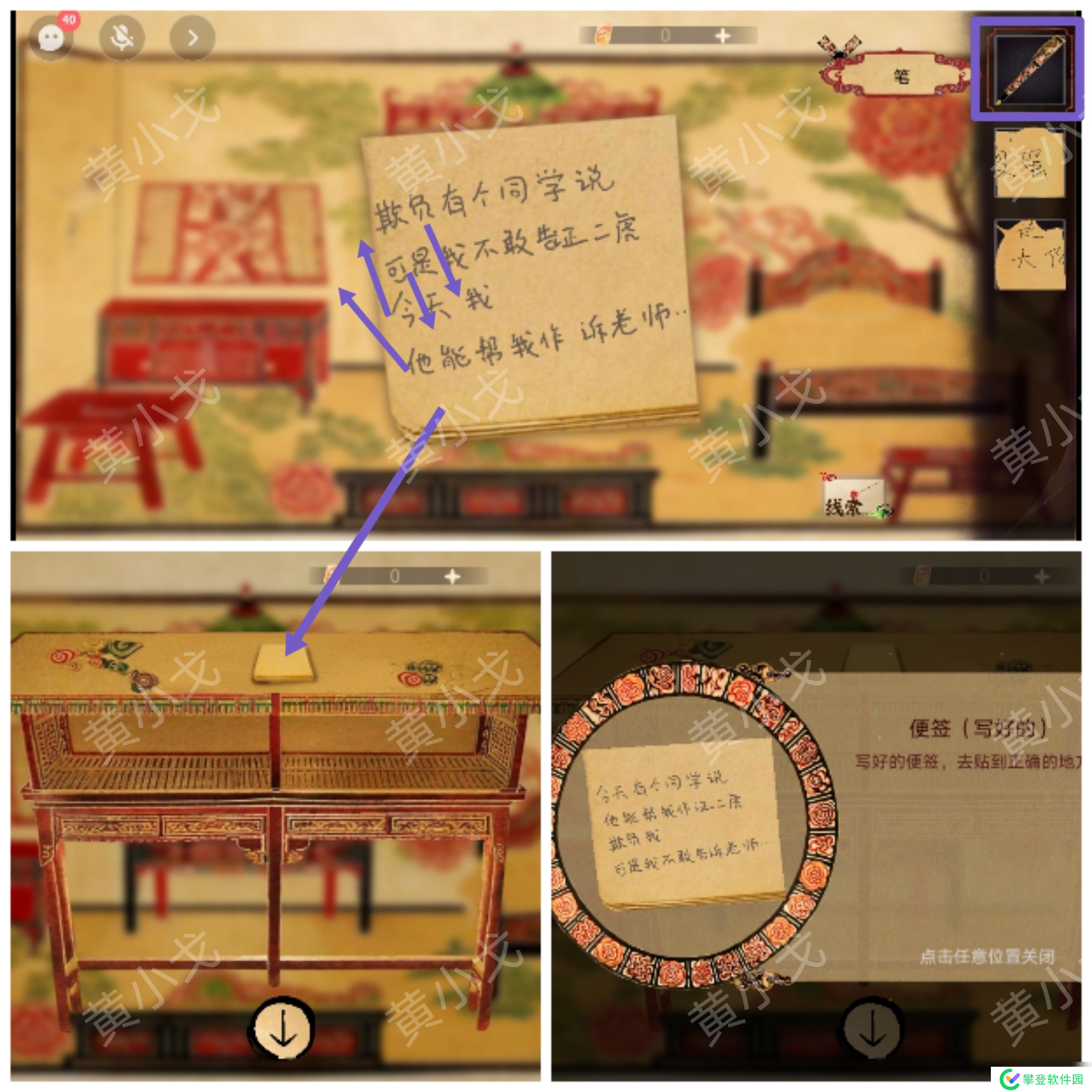 6.点击桌子上的便签,用【笔】排列好便签上的字,获得【便签(写好的)】