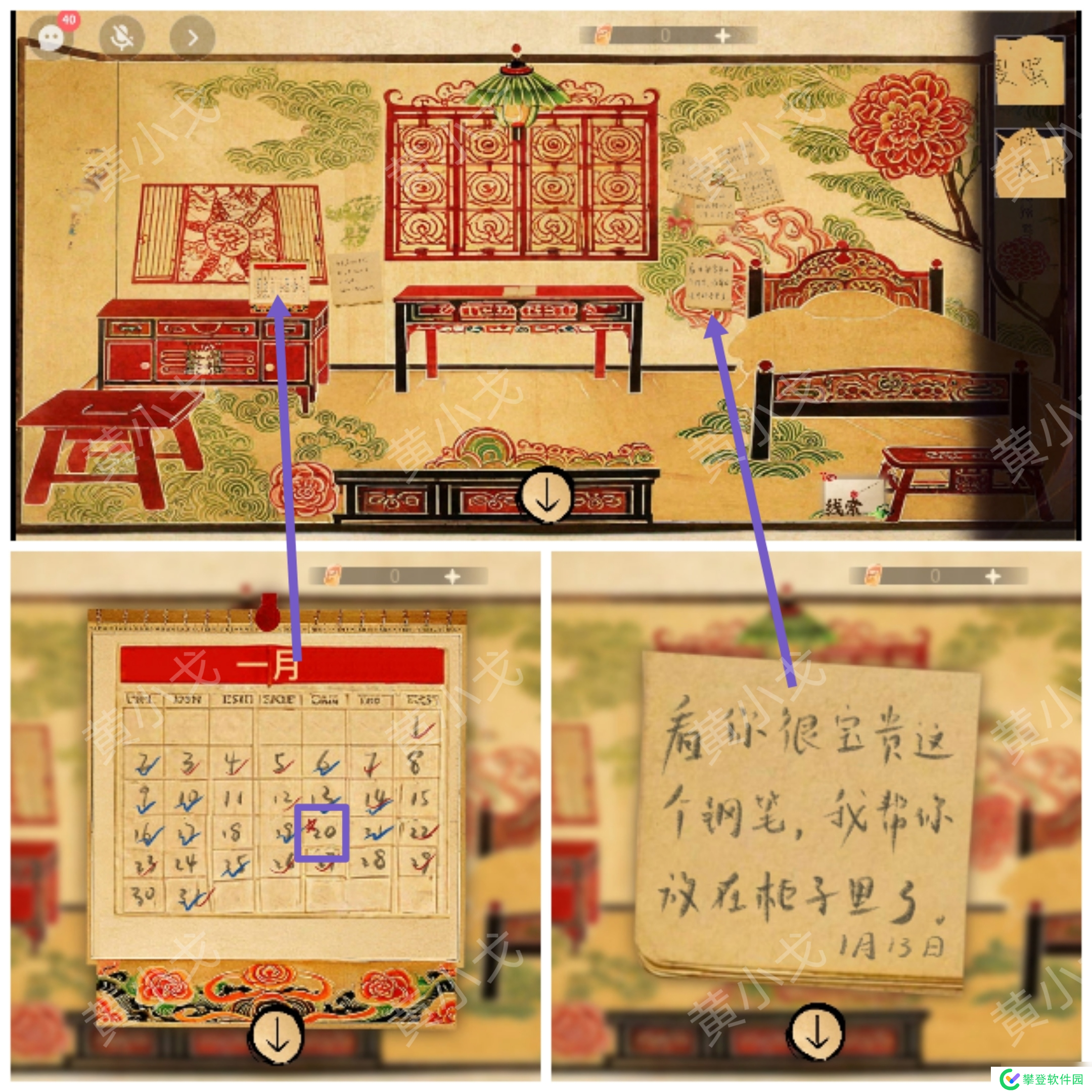3.点击查看墙上的便签;柜子上的日历,获得线索