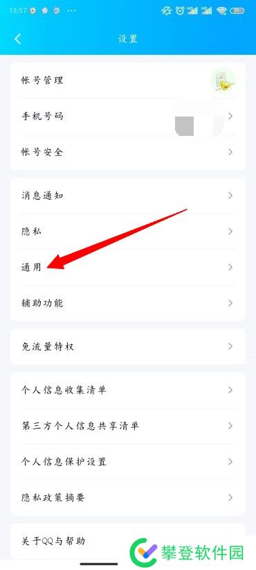 3、进入设置页面后,选择并点击【通用】选项;