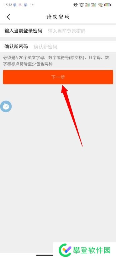 7、此时,我们只要按要求分别输入新老密码,再点击【下一步】就可以啦。