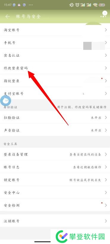 4、然后选择并点击第四行的【修改登录密码】选项;