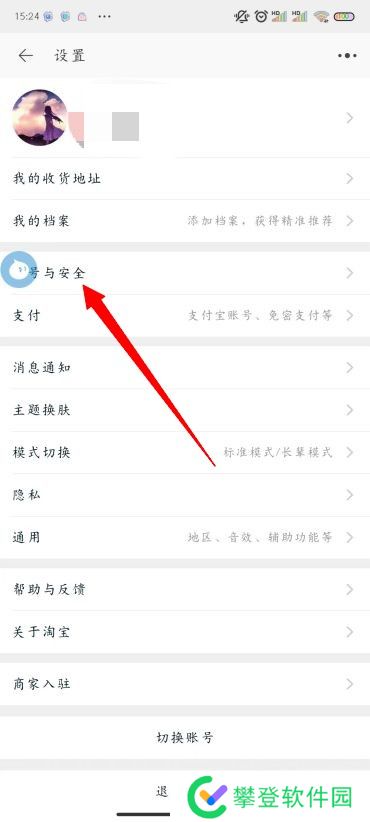3、进入设置页面,我们点击并选择【账号与安全】选项;