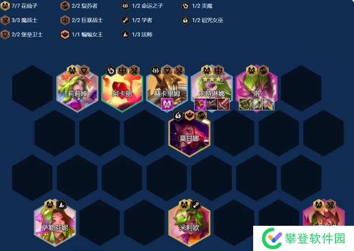 羁绊:7花仙子(需要花仙转) 3魔战士 2堡垒卫士 2复苏者 2狂暴战士