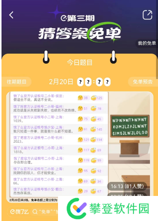 今天Wie大家带来的是饿了么免单1分钟活动的第三期,如果你还不知道2月20日猜答案免单的时间是什么时候的话,下面就让我们一起深入了解一下吧,感兴趣的千万别错过了。
