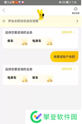 4、成功进入以后会跳出一个弹窗,询问用户是否绑定过摩拜单车,并选择退押金、退余额。