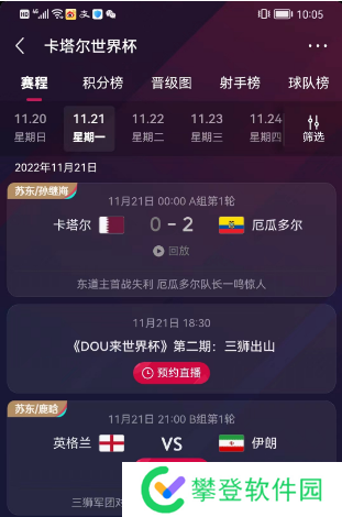 3、在这里我们可以看到整个世界杯的赛程,用户可以观看直播回访或者预约下一场直播。