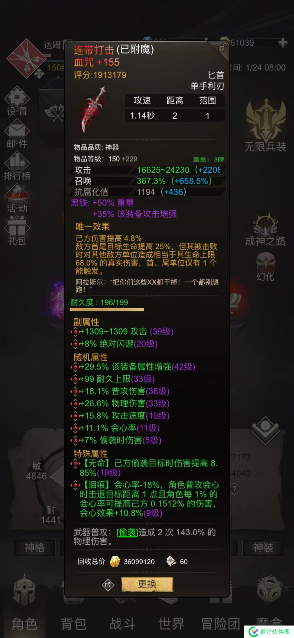 泪痕会心率-18%,击退目标距离1(血咒用不到),虽然加了会心率可提高伤害跟会心效果,但是失去的会心率也多(我会心不够)。