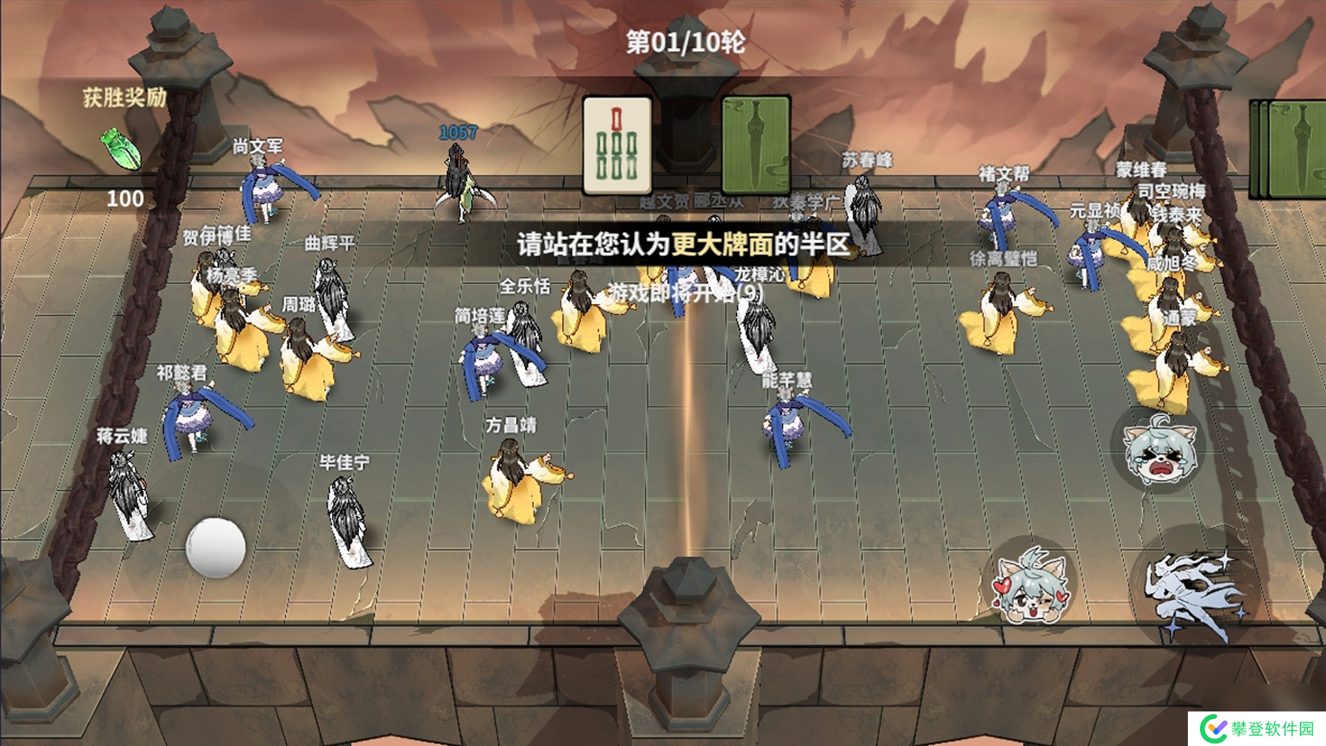 我们需要控制场上的角色前往左右两边的其中一边,当倒计时清零时,留在牌面更小半场的玩家将会全部出局,而站在牌面更大一边的玩家则会进入到下一轮。