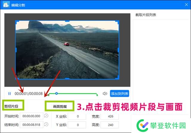 步骤三 上传好视频文件之后,接下来点击【编辑分割】,进入到片段剪切页面。我们可以对视频的长度进行剪切,也可以对视频的画面进行裁剪。编辑完成之后,点击【确定】即可返回到上一个页面。