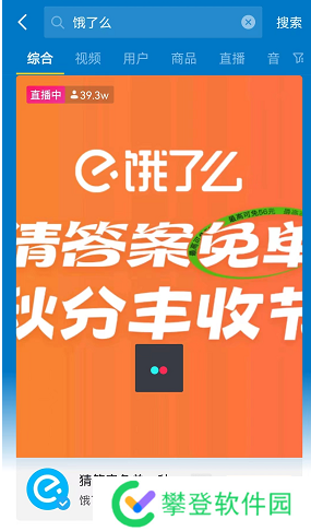 抖音搜索饿了么,找到下图搜索结果点击进入,回答问题就有机会获得现金红包。