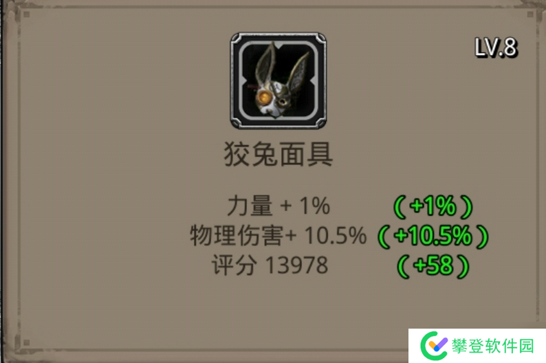2.由于剑豪的属性要求受卸负数值的影响很大,所以剑豪的战利品向来都是“你方唱罢我登场”的状态,诸如蛮族刀架(11力4.5物伤)、青龙玉佩(10力5物伤)、战甲纽扣(7.5力7物伤)、狡兔面具之类的战利品几乎是轮番上阵,没有一个固定的搭配,所以狡兔面具的强度与定位可谓是相当模糊,很难说有什么明确的标准。