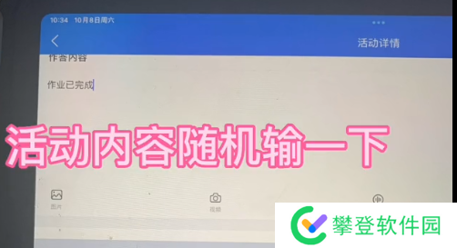 4、在活动详情页面点击左下角的图片,上传拍好照片的作业。
