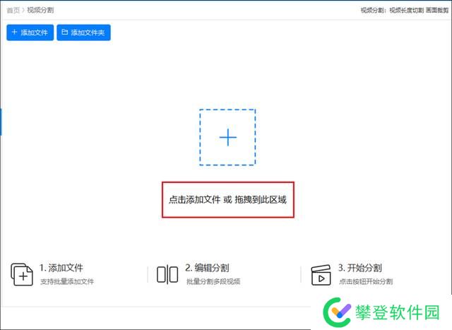 选择好操作功能之后,点击上传需要分割的视频文件。可以直接点击添加文件,也可以直接拖动上传文件。