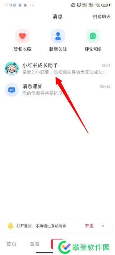 1、首先我们打开小红书手机客户端,然后点击页面右下方的【消息】;