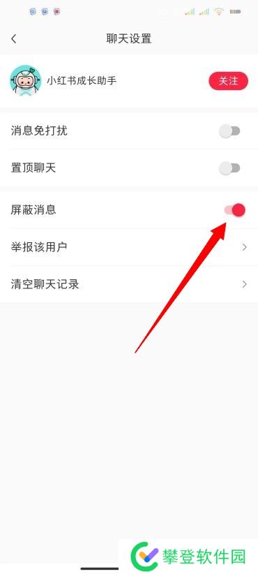 4、然后如图所示,将【屏蔽消息】选项打开,这样我们就不会再收到这个人的私信啦。