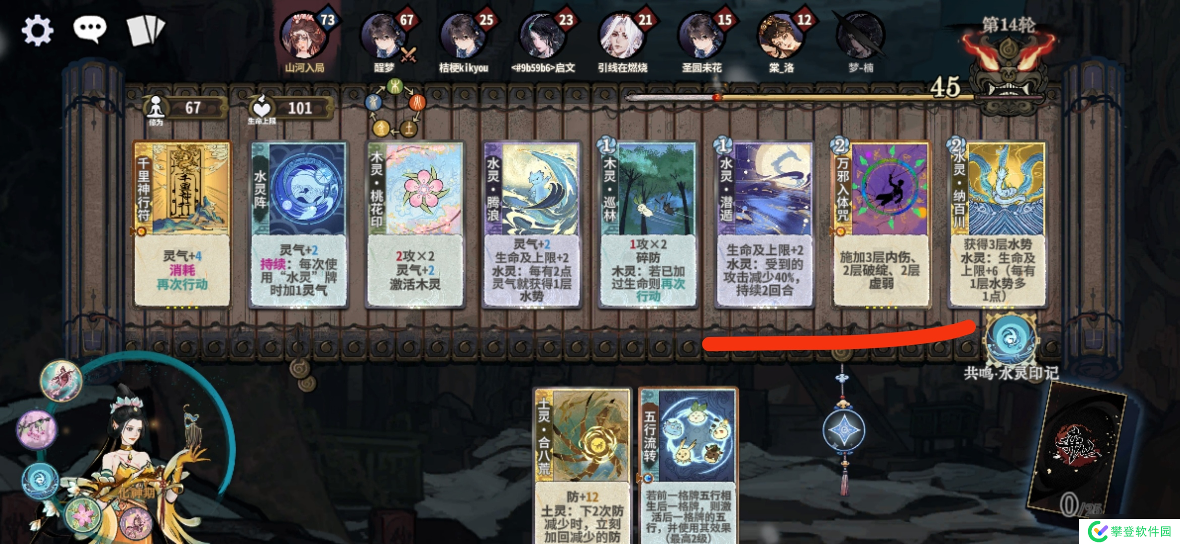 万邪跟封元镇魂符很好用,万邪跟潜盾配合能有80%的减伤,镇魂符可以扣灵气。想提升操作上限就从这两张牌下手
