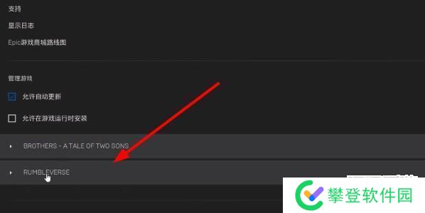 2、紧接着我们在设置页面直接拉到最下方,找到箭头所指的【RUMBLEVERSE】点击。