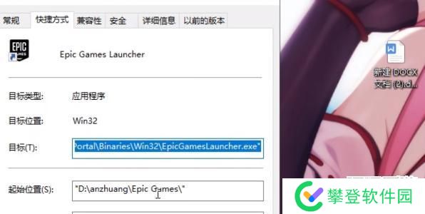 1、修改启动图标:在EPIC图标右击属性页面,然后在目标栏目后方输入【-Culture=zh-Hant】。