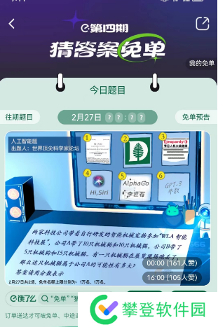 人工智能是目前大热的一个话题,今天的饿了么2.27免单题目就是和人工智能相关,很多小伙伴都还不知道今天的免单时间是什么时候,感兴趣的小伙伴让我们一起深入了解一下吧。