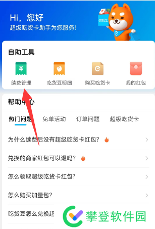 4、在使用帮助页面,找到自助工具中的【续费管理】,点击进入该页面。