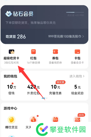 1、登录饿了么app,在【我的】个人信息页面,点击超级吃货卡。