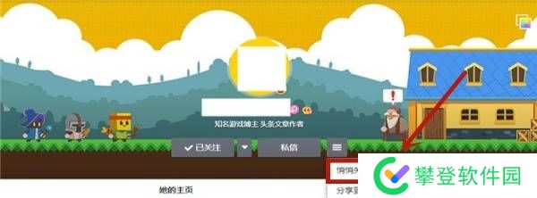 3、点击页面中三条杠图标,然后点击弹出窗口的“悄悄关注”;