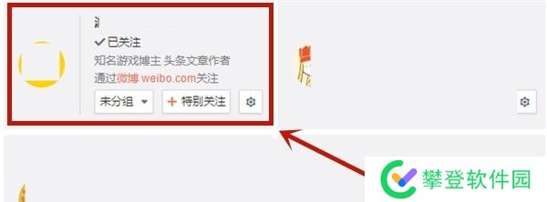 2、在关注列表选择不想被别人看到的关注对象,点击进入此对象的微博主界面;