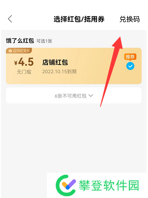 4、进入红包页面以后,我们在右上角就能看到兑换码。